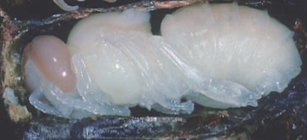 Abb. 1-7: Drohnenpuppe aus der Zelle gezogen. Diese Drohnenlarve hatte keinen Befall durch Varroa