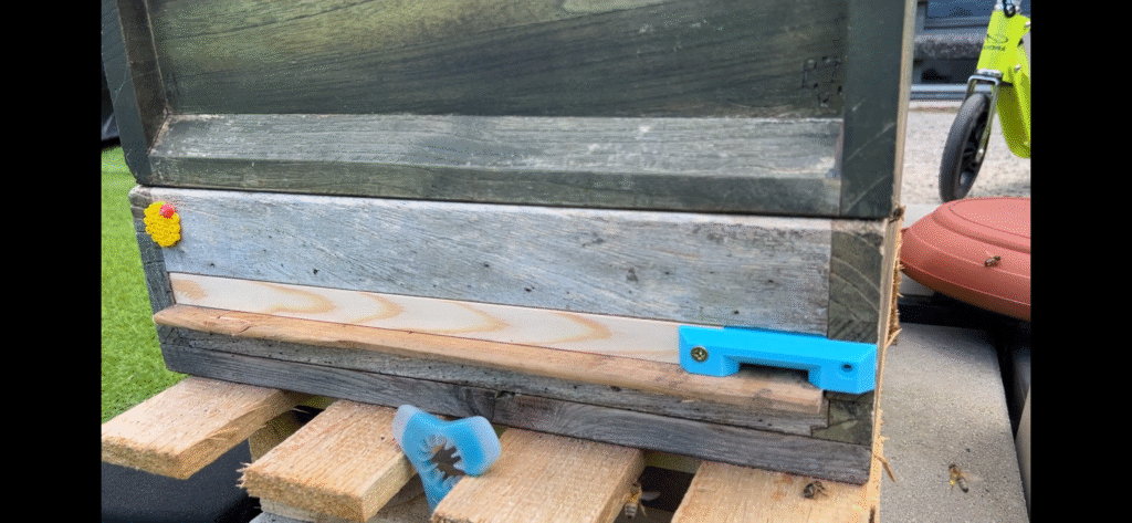 Abb. 1: Flugloch-Einengung gegen Vespa Velutina Test in Dadant 12er, Willich, bei Krefelder Imker Christoph Grund